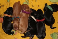 https://www.vonderheideducht.de | 2 Rüden / 4 Hündinnen schwarz mit loh rot geboren am 07.06.2019 |