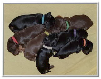 3 Rüden / 3 Hündinnen braun mit loh, schwarz mit loh, rot geboren am 28.07.2018 |