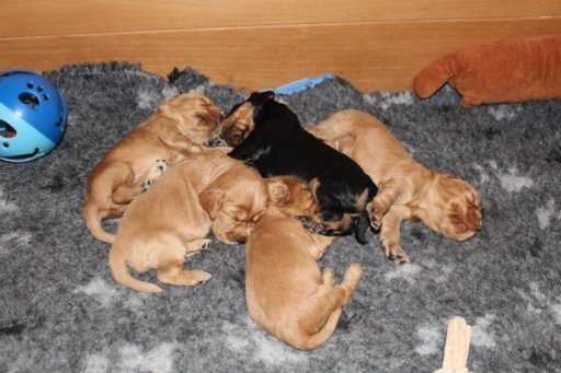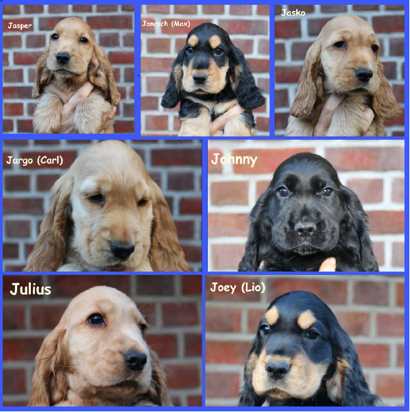 http://www.cocker-vom-tegelbusch.de/ | 7 Rüden rot, schwarz, schwarz mit loh geboren am 10.08.2017 |