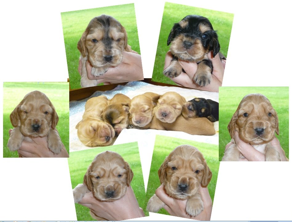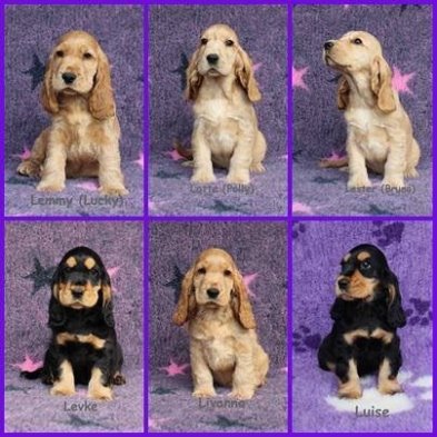 http://www.neisse-cocker.de/ | 2 Rüden / 4 Hündinnen zobel, rot, schwarz mit loh 2014 |