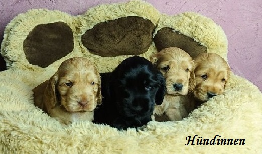 http://www.cocker-vom-tegelbusch.de | 1 Hündin / 4 Rüden rot, schwarz, schwarz mit loh |