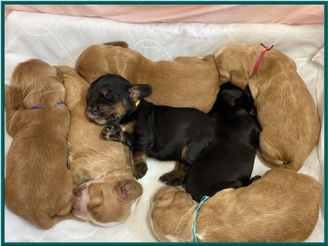 2 Hündinnen / 5 Rüden rot und schwarz mit loh |